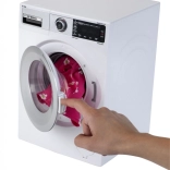 Pralni stroj je opremljen z vrtečim bobnom in izbiro programov pranja z realističnimi zvoki, kar otroku nudi popolnoma funkcionalno izkušnjo pranja.