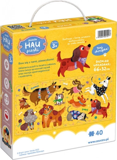 CzuCzu Sestavljanka Hau Piesci ponuja ne le zabavno sestavljanje, temveč tudi razvija fino motoriko in domišljijo otrok. Barvita in velika sestavljanka vsebuje 40 kosov in predstavlja 10 ljubkih kužkov, ki so pripravljeni za igro! Sestavljanje sestavljank omogoča otrokom prepoznavanje oblik in barv, razvijanje domišljije ter učenje koncentracije. Sestavljanje sestavljank prav tako pomirja in uči potrpežljivosti.