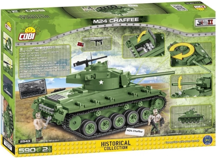 M24 Chaffee je v službi zamenjal lahke tanke M3/M5 Stuart, bil oborožen s 75-mm topom in kot prvi zahodni zavezniški tank uporabljal torzijske drogove. Udeležil se je operacij v Franciji, Italiji in Tretjem rajhu, po vojni pa je služil tudi v Koreji. S tem kompletom COBI boste sestavili podroben model, ki ujame značaj slavnega stroja iz ključnega obdobja 20. stoletja.
