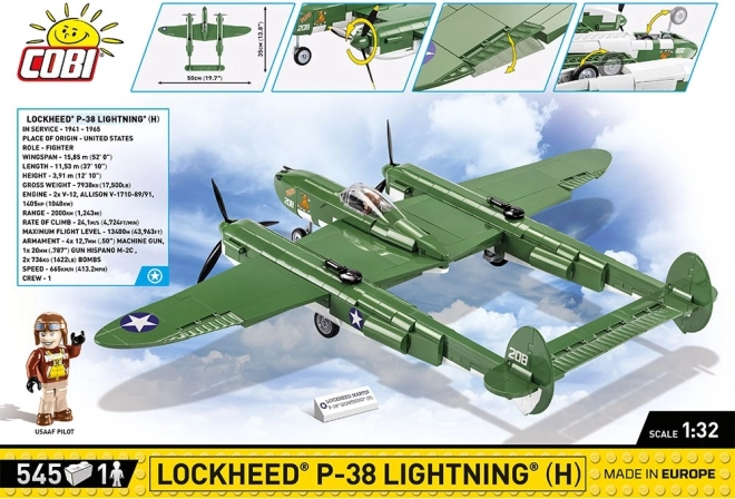 Model ponuja vrteče se propelerje, zložljivo podvozje, premične krmilne površine in odpirajočo se kabino za odlično zasnovano figurico pilota. Priložena sta tudi stojalo/tablica z nazivom in uradni logotip LOCKHEED MARTIN. Odlično darilo za ljubitelje letalstva, zgodovine in tehnike – gradite zgodovino kocko za kocko.