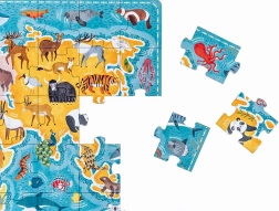 Vstopite v svet čudes in navdiha z uganko Puzzlove CzuCzu Živali Zemljevid sveta. Ta čudovita sestavljanka, sestavljena iz 60 kosov, ne predstavlja le kontinentov in oceanov, ampak tudi fascinantne živali, ki naseljujejo različne kotičke našega planeta. Popolna za otroke, ki obožujejo živali in hrepenijo po novem znanju in pustolovščinah.