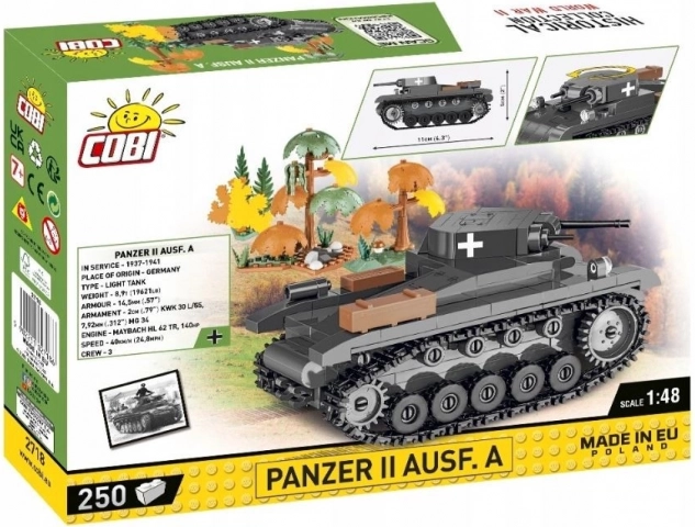 Potopite se v modelarsko izkušnjo s to stavebnico tanka Panzerkampfwagen II, ki je bil ključen stroj nemške vojske na začetku druge svetovne vojne. Zaradi novega merila 1:48 je model idealen za začetnike in ljubitelje kompletov COBI. Del pakiranja so tudi dodatki iz kockastega okolja, ki prinašajo nov razsežnost zabave. Izjemno natančna konstrukcija in visoka kakovost potiskov zagotavljata, da model ostane brezhiben tudi po urah igre.