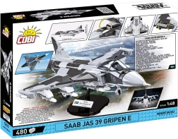 SAAB JAS 39 Gripen E je najnovejša različica švedskih večnamenskih lovcev. Ta gradbeni set vsebuje 480 vrhunskih kosov, ki vam omogočajo sestaviti sodoben lovec v barvah švedskega letalstva.