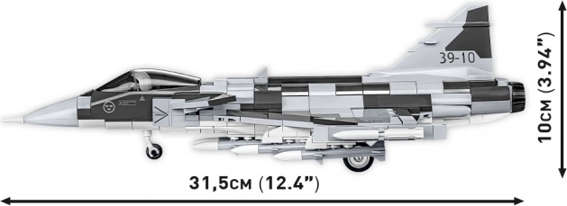 Gradbeni set COBI omogoča izdelavo modela lovca v merilu 1:48 z visoko pozornostjo do detajlov. Kocke so potiskane s kakovostnimi tiskanji in komplet vsebuje posebno osnovo s ploščico z imenom seta in švedsko zastavo.