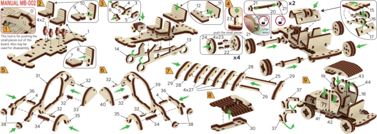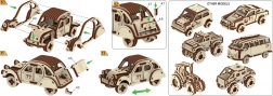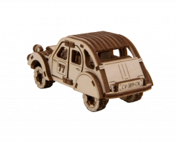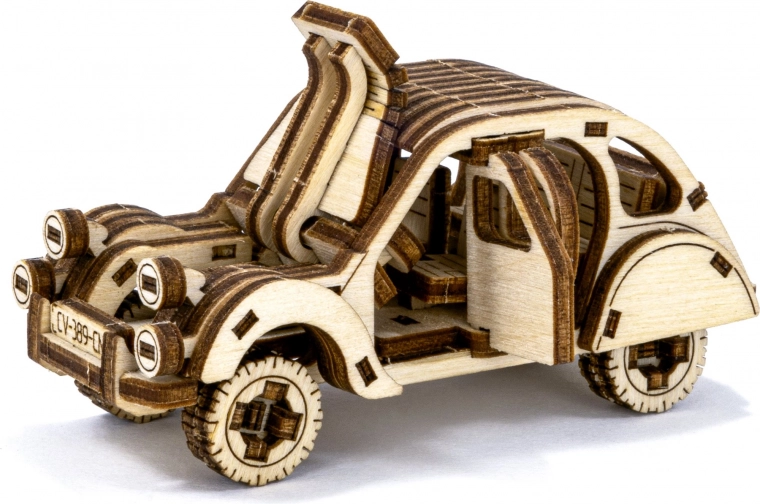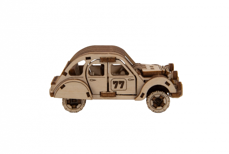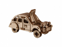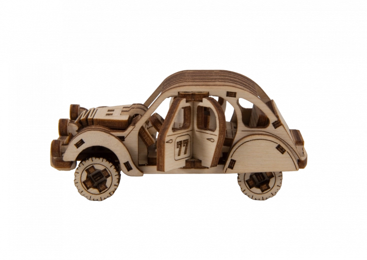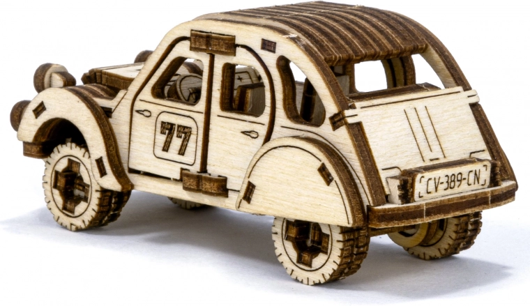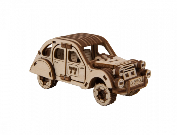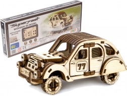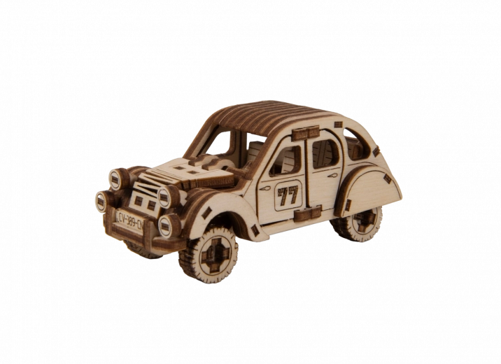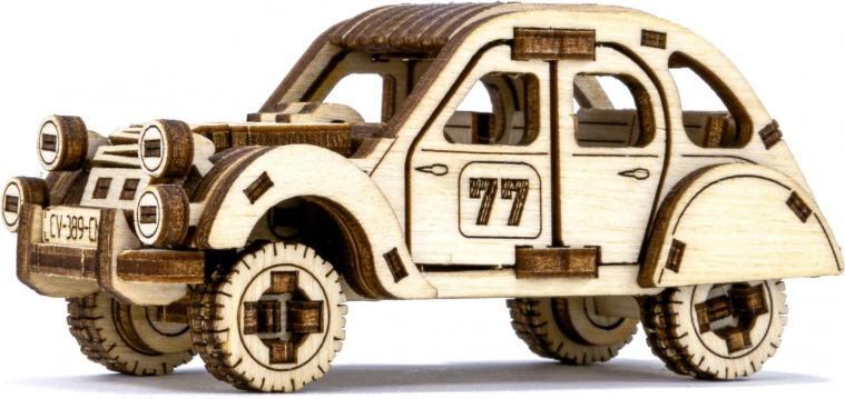 Ta model rally vozila ponuja privlačno kombinacijo kreativne zabave in elegantne dekoracije za notranje prostore. Deli iz vrhunskega brezovega vezanega lesa se natančno prilegajo – brez lepila in vijakov – končni rezultat pa je impresiven retro avtomobil s številnimi drobnimi detajli.