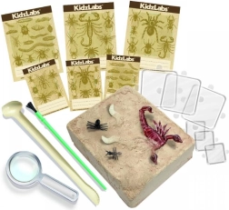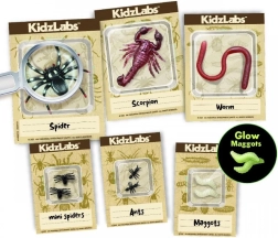 Po izkopu lahko žuželke postavite na karte z primerki in z orodji raziščete podrobnosti. Komplet podpira učenje z delom, domišljijo in osnove naravoslovja.