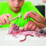 Spremenite domačo mizo v majhno arheološko najdišče. Otroci vadijo fino motoriko, potrpežljivost in radovednost, ko iz mavčnega bloka odkrivajo “okamnenele” žuželke. Nekatere figurice svetijo v temi, zato je doživetje še bolj napeto.