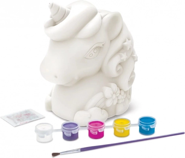 - Hranilnik v obliki samoroga in dodatki za okrasitev (glede na komplet)