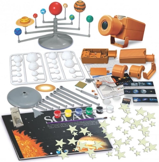 S tem izobraževalnim kompletom se otroci na zabaven način seznanijo z načeli znanosti in raziskovanja vesolja. Sestavili bodo lasten model Osončja, razumeli akcijo in reakcijo pri izstrelitvi rakete in s projektorjem pokukali v globine kozmosa. Del kompleta so tudi žareče zvezde, ki po osvetlitvi nežno žarijo in spremenijo otroško sobo v nočno nebo.