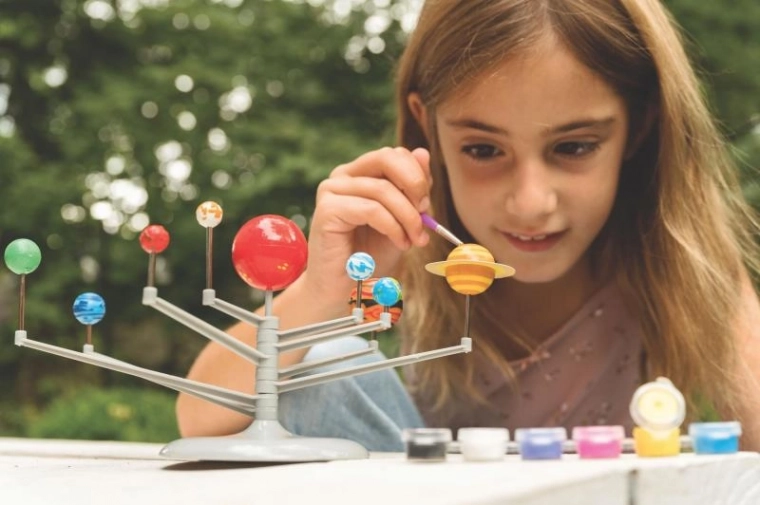 Otroci sestavijo model planetov in jih s priloženimi barvami dokončajo. Zabavna pot do razumevanja zaporedja in velikosti planetov ter osnov astronomije.