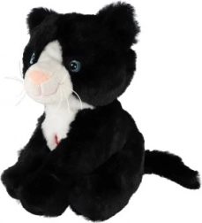 Ta mehka črno-bela plišasta mačka je odličen spremljevalec za male in večje otroke. Zahvaljujoč nežni in prijetni površini bo priljubljen ljubček za uspavanje in dnevno igro. S pritiskom na trebušček mucka mijavka kot prava, kar spodbuja otroško domišljijo in čutno zaznavanje.
