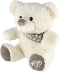 Ta mehak plišasti medvedek velikosti 35 cm je ustvarjen za objemanje in pomiritev. Zaradi mehkega materiala in nežnih detajlov ga bodo vzljubili najmlajši otroci in tudi starejši sorojenci. Bela barva s kontrastnimi rjavimi poudarki ter ljubka rutica dajejo igrači brezčasen videz.