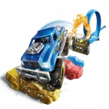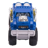 Igrača je opremljena z monster truckom z velikimi kolesi in izrazitimi detajli, pripravljenim za premagovanje ovir.
