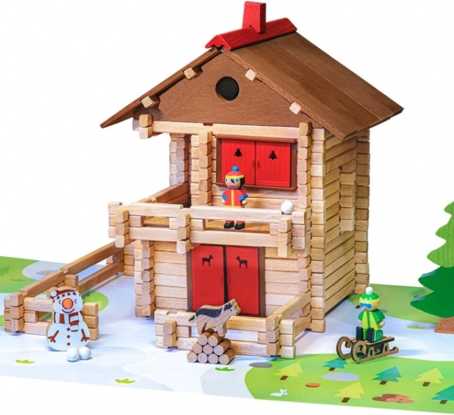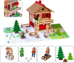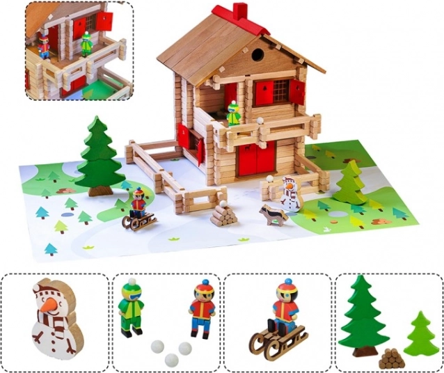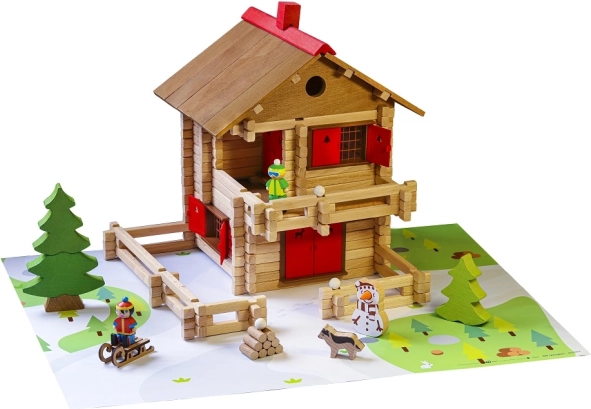 Ta tradicionalna lesena sestavljanka izhaja iz ikoničnih francoskih setov JEUJURA. Robustni brunarni tramovi in barviti detajli omogočijo otrokom, da zlahka zgradijo veliko alpsko kočo in zaigrajo zimske zgodbe na tematski podlagi. Vsak košček je prijeten na dotik in natančno prilega, zato je gradnja zabavna in intuitivna.