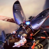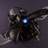 Ta dodelan model rogača bo vaše delovno mesto spremenil v majhno delavnico domišljije. Natančno zasnovani deli in kakovostni materiali ustvarjajo impresiven steampunk videz, medtem ko motor požene kovinska membranska krila in mehanske vpenjalne čeljusti. Vgrajen svetlobni indikator energije poudari tehnični značaj modela.