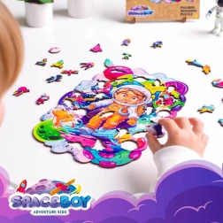 Podarite otrokom edinstveno izkušnjo z sestavljanjem lesenih sestavljank Vesoljski pustolovec. Ta set vsebuje 120 natančno izrezanih koščkov, ki zaradi svoje oblike ponujajo večji izziv in zabavo kot klasične sestavljanke. Z njihovo pomočjo bodo otroci razvijali svoje