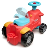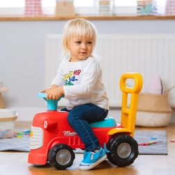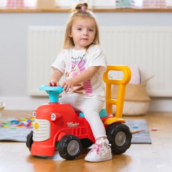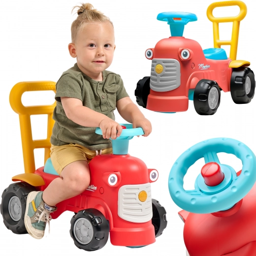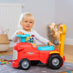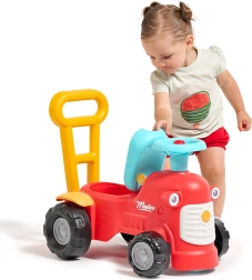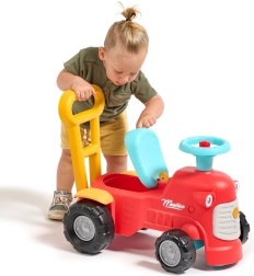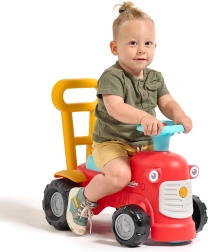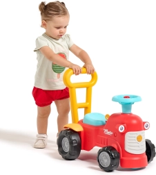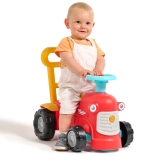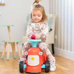 Ko stojijo za traktorčkom, lahko otroci uporabljajo ergonomske opore za učenje hoje na igriv in varen način. Pod sedežem je majhen prostor za shranjevanje za zaklade.