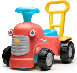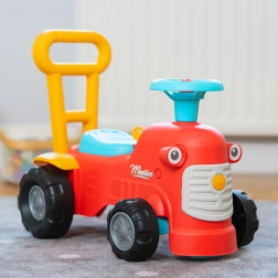 Maurice ponuja odlično priložnost, da se otroci na igriv način učijo novih veščin. Traktorček je opremljen z majhnim zvočnim gumbom in hupo na volanu, ki spodbujata otrokove motorične spretnosti in poslušanje. Vožnja s traktorčkom, igra z volanom in upravljanje z vrtljivimi kolesi pomagajo otrokom vaditi koordinacijo in ravnotežje.