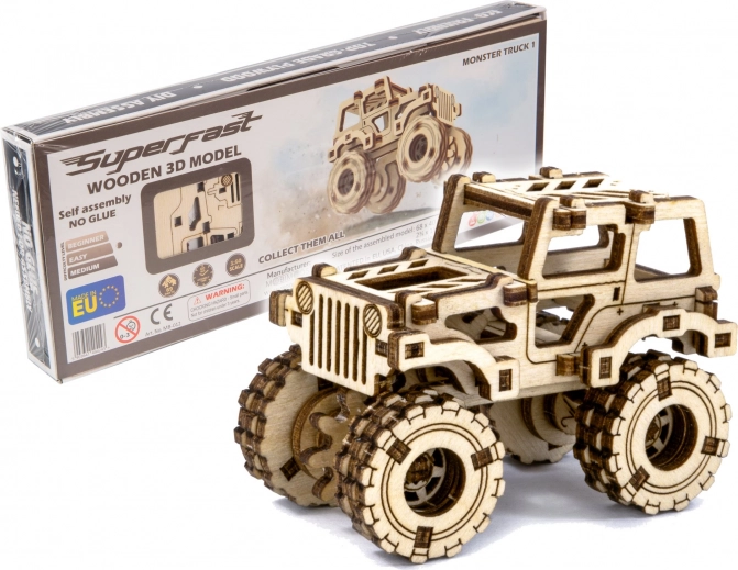Privoščite si veselje ob sestavljanju z lesenimi 3D sestavljankami Monster Truck Superfast. Zaradi natančnih laserskih izrezov se deli popolno prilegajo, rezultat pa je stilski model s funkcionalnim gibanjem koles – idealen za razstavljanje ali kratke vožnje po mizi.