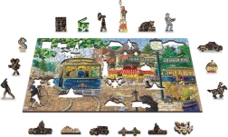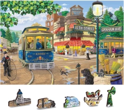 Ta vrhunska lesena sestavljanka prikazuje živahen prizor z retro tramvajem in ulico, polno časovnih detajlov. Zaradi z laserjem izrezanih koščkov z gladkimi robovi je sestavljanje hkrati užitek in izziv. Dvostranska izvedba omogoča sestavljanje z licevne strani po motivu ali z hrbtne strani po ponavljajočem se vzorcu.