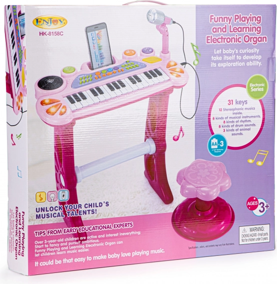S to čudovito klavitulo se lahko vsak otrok potopi v svet melodij in zvokov ter ustvari svoje pesmi. Klavitura izgleda kot pravi instrument, priloženi stolček pa malemu umetniku omogoča udobno sedenje pred tipkami. Igrača bo hitro osvojila srca vseh, izjemni nastopi pa bodo postali stalni del dnevne sobe.