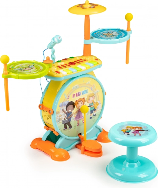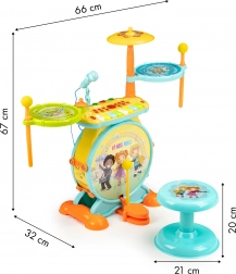 Omogočite svojim otrokom vstop v svet melodij in kompozicije lastnih pesmi s tem čudovitim glasbenim setom. Otroški bobni izgledajo kot pravi glasbeni inštrument in so opremljeni s stolčkom za udobno igranje. Otroci bodo navdušeni nad možnostmi, ki jih ta set ponuja, vključno s karaoke in povezavo s telefonom ali mp3 predvajalnikom.