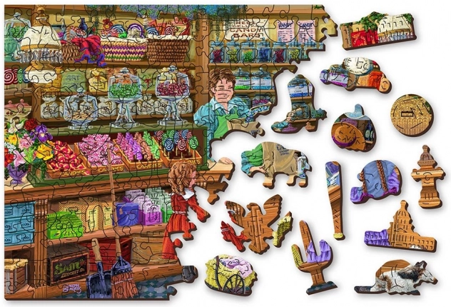 Privoščite si izziv z leseno dvostransko sestavljanko WOODEN CITY Sladka pustolovščina 2v1. Zahvaljujoč trdnemu HDF materialu debeline 3–4 mm in natančnemu laserskemu izrezu ima vsak del popolno prileganje in čudovito zglajene robove. V kompletu so tudi whimsy kosi – posebej oblikovani deli v oblikah živali, stavb in predmetov, ki dodajo sestavljanju šarm in lahko stojijo kot drobne figurice.