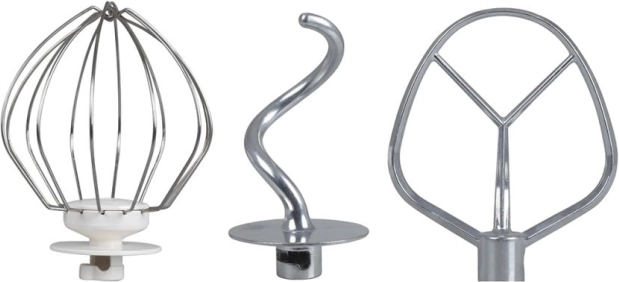 V kompletu so kavelj za gnetenje, K-metlica za mešanje in metlica za stepanje. Vsi nastavki se lahko pomivajo v pomivalnem stroju za preprosto vzdrževanje.