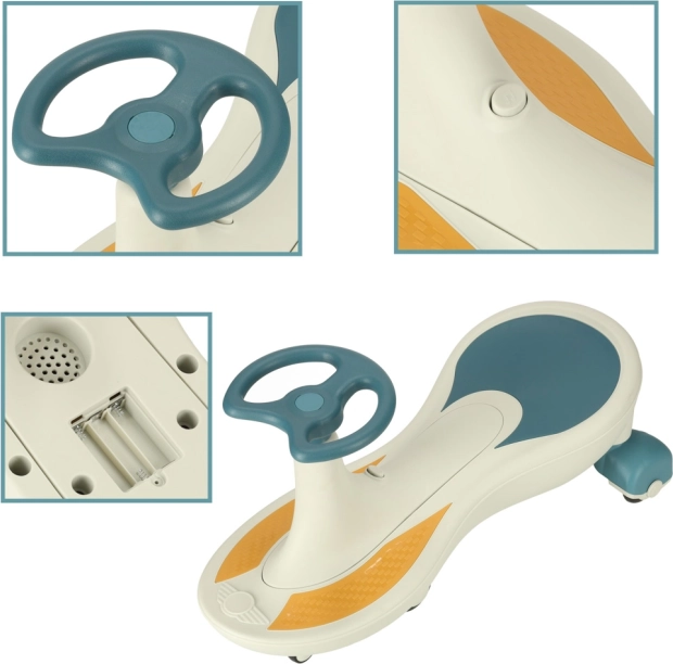 Zabavno gravitacijsko poganjalo za otroke od 3 let z LED-kolesi, ki med vožnjo zasvetijo, in z vgrajeno glasbo na gumb. Zahvaljujoč pogonu z gibanjem rok spodbuja koordinacijske sposobnosti in ponuja aktivno zabavo doma in na prostem. Robustna konstrukcija z nosilnostjo do 100 kg in udobnimi merami 76 × 41 × 29 cm.
