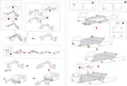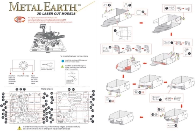 Za sestavljanje modela uporabite dele iz jeklenih ploščic (11 x 11 cm) in sledite priloženim navodilom. Dele povezujte s pomočjo zatičev in odprtin. Priporočamo uporabo majhnih tankih klešč, ki pa niso priložene v pakiranju.