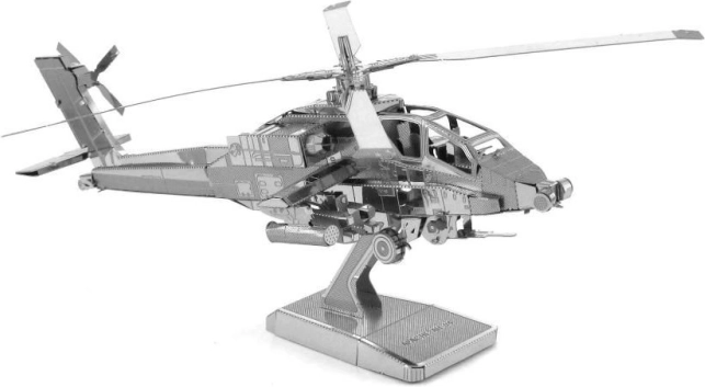 Ustvarite svoj 3D model helikopterja AH-64 Apache, ki bo odlična dekoracija doma, v pisarni ali učilnici. Metal Earth 3D sestavljanka je znana po svoji natančnosti in podrobnostih zahvaljujoč laserskemu graviranju. Iz jeklenih plošč velikosti 11 x 11 cm boste sestavili fascinantno miniaturo slavnega ameriškega bojnega helikopterja, ki se uporablja od konca hladne vojne do danes.