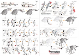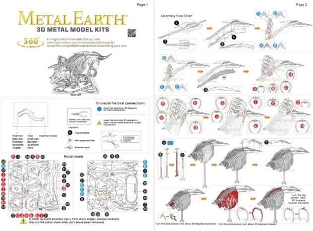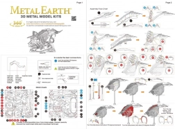 Posamezne dele odstranite iz kovinskih plošč; po potrebi uporabite majhne strižne klešče (niso priložene). Deli se med seboj spajajo z zaskočnimi zatiči (kljukicami) in odprtinami. Kljukico upognite z majhnimi tankimi kleščami (niso priložene) ter postopoma povežite vse zatiče, dokler ne nastane zelo realistična mojstrovina!