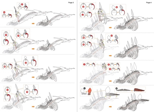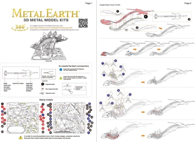 Posamezne dele odstranite iz kovinskih plošč; po potrebi uporabite majhne strižne klešče (niso priložene). Deli se med seboj spajajo z zaklepi, ki jih tvorita zatič (kljukica) in odprtina. Zatič upognite z majhnimi, ozkimi kleščami (niso priložene) in postopoma povežite vse zaklepe, dokler ne nastane zelo realistična mojstrovina!
