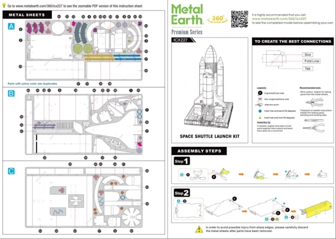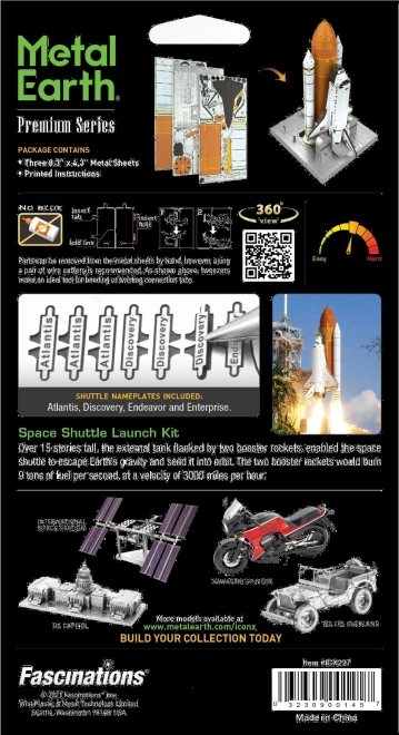 Komplet za ustvarjanje fascinantnega kovinskega 3D modela. Sestavljanje sestavljanke METAL EARTH zahteva potrpežljivost in spretne roke. Končni rezultat v celoti poplača vložen trud. Miniaturne replike so impresiven in privlačen okras. Iz kvadratnih jeklenih ploščic vam bodo pod rokami nastali podrobno izdelani, očarljivi modeli. Avtentičen videz 3D sestavljank METAL EARTH je dosežen z natančnim laserskim graviranjem. Orodje ni priloženo. Postopek dela: Posamezne dele odstranite iz kovinskih ploščic, po potrebi uporabite majhne strižne klešče (niso priložene). Delce med seboj spojite s pomočjo zaskočnih ključavnic, ki jih tvorita jeziček in odprtina. Jeziček upognite z majhnimi, tankimi kleščami (niso priložene) in postopoma povežite vse ključavnice, dokler ne nastane zelo realističen mojstrski izdelek!