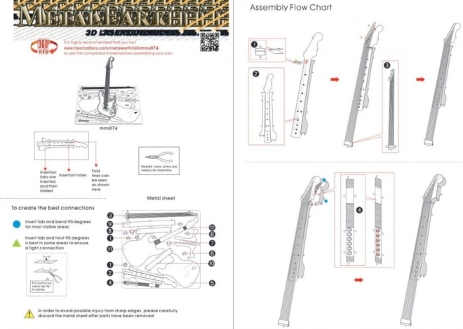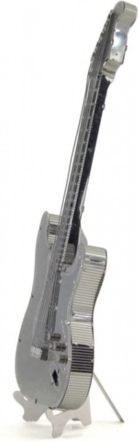 Metal Earth prinaša 3D sestavljanko, ki predstavlja izziv za potrpežljive in spretne roke. Po končanem delu vas bo navdušil osupljiv rezultat – podrobna replika električne kitare, ki je ne le fascinantna, temveč tudi privlačna dekoracija. Model je izrezan iz jeklene ploščice velikosti 11 x 11 cm s pomočjo natančnega laserskega graviranja.