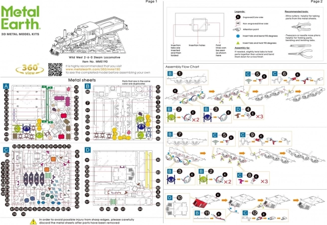 Razburljiv izziv, užitek pri sestavljanju in osupljiv rezultat – to so modeli METAL EARTH! Model iz kolekcije Divji zahod za vse ljubitelje Divjega zahoda! Sestavljanje 3D sestavljanke METAL EARTH zahteva potrpežljivost in spretne roke. Končni rezultat pa v celoti poplača vložen trud! Minijaturne replike so posebej impresiven in privlačen okras ne le doma, temveč tudi v pisarni ali šoli. Iz kvadratnih jeklenih ploščic (11 × 11 cm) vam pod rokami zraste podrobno dodelan, fascinanten model. Avtentičen videz 3D sestavljank METAL EARTH je dosežen z natančnim laserskim graviranjem. Pakiranje vsebuje 4 jeklene ploščice in navodila za sestavljanje. Orodje ni priloženo. Delovni postopek: Posamezne dele vzemite iz kovinskih ploščic, po potrebi uporabite majhne klešče za rezanje (niso priložene). Delci se med seboj spajajo z zapirali, ki jih tvorita zatič (kljukica) in odprtina. Zatič upognite s pomočjo majhnih, tankih klešč (niso priložene) in postopoma povežite vsa zapirala, dokler ne nastane zelo realističen mojstrski izdelek! Priporočena starost: od 14 let. Mere sestavljene sestavljanke približno 19,5 × 3,5 × 4,8 cm
