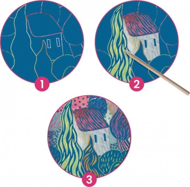 V paketu: 4 slike 20 × 20 cm, dvostranska lesena paličica in navodila za uporabo.