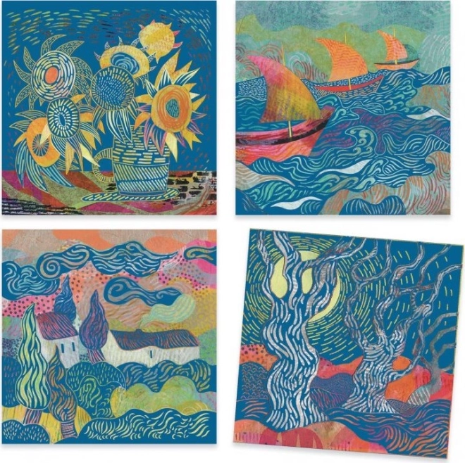 Oblikovalski komplet priljubljenih praskank, navdihnjen s slavnim umetnikom Vincentom van Goghom.