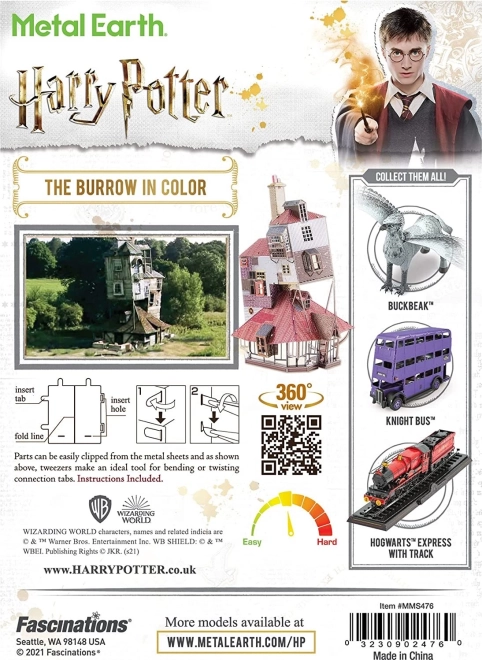 Odkrijte čarobnost modelarstva s 3D kovinsko sestavljanko METAL EARTH Harry Potter: Jazbina (The Burrow). Iz predhodno izrezanih jeklenih ploščic sestavite podrobno miniaturo z izpostavljenimi teksturami in pristnimi elementi, ki izstopajo zaradi natančnega laserskega graviranja. Končni model je idealen kot dekoracija na mizi ali polici ter kot darilo za oboževalce HARRY POTTER.