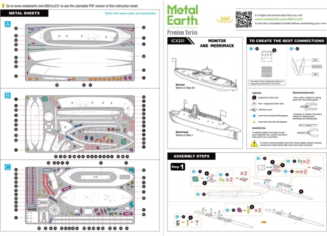 Kovinske 3D sestavljanke METAL EARTH Monitor & Merrimack (ICONX)