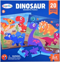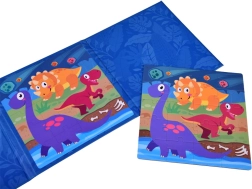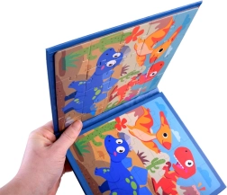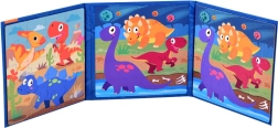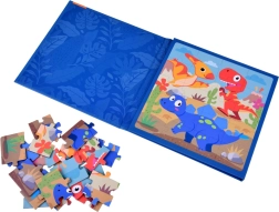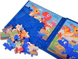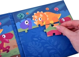 Zabavna magnetna knjižica s sestavljankami na temo dinozavrov ponuja dve barvni sceni po 20 koščkov. Zahvaljujoč magnetskim stranem koščki dobro držijo, zato je sestavljanje udobno doma in na poti. Razvija fino motoriko, logično mišljenje in usklajenost roka–oko.