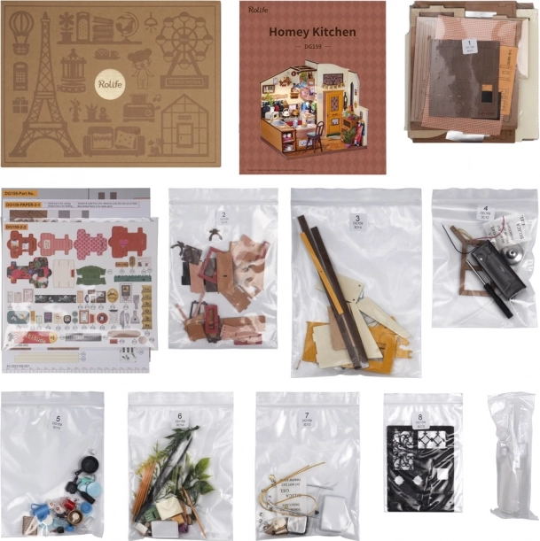 Uživajte v veselju ustvarjalnosti pri montaži podrobno obdelanih loncev, ponv in druge opreme. Idealno za ljubitelje modelov in domače dekoracije, ki želijo izraziti svojo strast in spretnost.