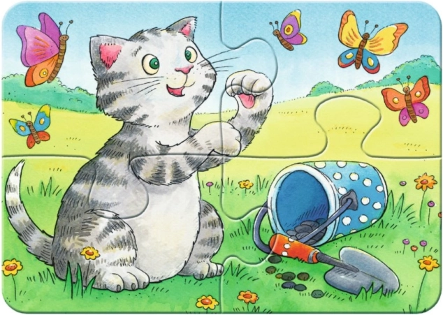 Začnite s sestavljanko, ki raste skupaj z otrokovimi spretnostmi. Set RAVENSBURGER Moje prve sestavljanke hišni ljubljenčki 4v1 vsebuje štiri samostojne sestavljanke z različnim številom koščkov – 2, 4, 6 in 8. Otroci vadijo prepoznavanje oblik, koordinacijo oko–roka ter potrpežljivost, obenem pa uživajo v ljubkih motivih hišnih ljubljenčkov.