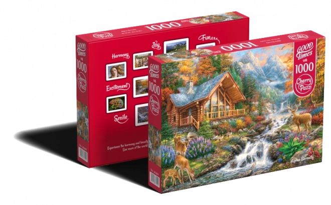 Ta sestavljanka ponuja umik v svet alpske lepote. Prikazuje prizorišče z gorsko kočo ob reki, jesenskim drevjem in sončnimi žarki, ki vas očarajo s svojo nostalgično atmosfero.