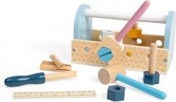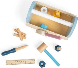 Leseni zaboj z orodjem je idealna izbira za prve mojstrske podvige. Otroci lahko zabijajo, zategujejo in merijo ter pri igri razvijajo koordinacijo oko–roka, potrpežljivost in besedišče. Kompaktne mere in praktičen ročaj omogočajo, da komplet vzamejo s seboj kamor koli.