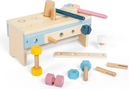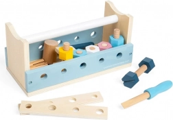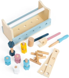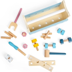 Vključuje kladivo, izvijač, ključ, ravnilo, vijake in matice – vse prilagojeno malim otroškim rokam.