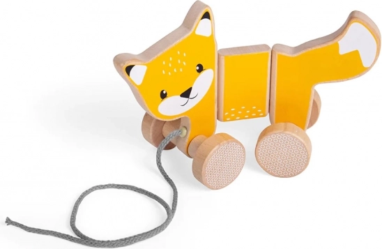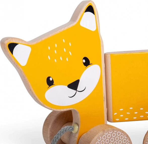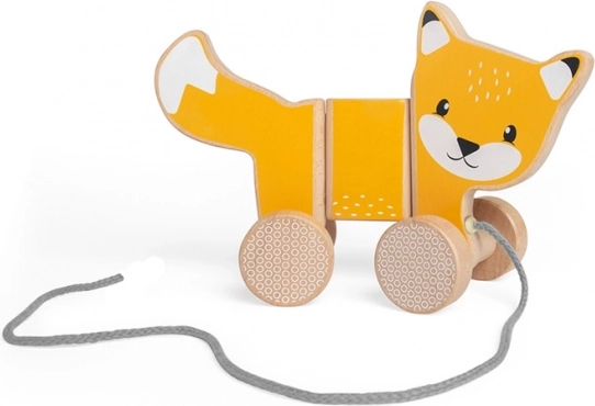 Prisrčna vlečna lisica iz lesa FSC spodbuja spretnost, grobo motoriko in koordinacijo otrok od 1. leta dalje. Ima gladko tekoča kolesa z geometrijskim dizajnom, gibljive sklepe za enostavno zavijanje in mehak varen trak, prijeten za otroško roko. Primerna za igranje doma in na prostem na ravnih površinah.
