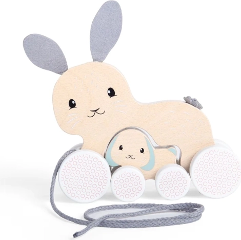 Ta očarljivi vlečni zajček s skritim mladičkom je idealen spremljevalec za prve raziskovalne poti po stanovanju. Zaradi kakovostne izdelave iz trajnostno pridobljenega FSC® lesa in za otroke varnih barv je igra ne le zabavna, temveč tudi varna. Mehka filcana ušesa in repek dajejo igrački prisrčen videz in prijetno tipno stimulacijo.