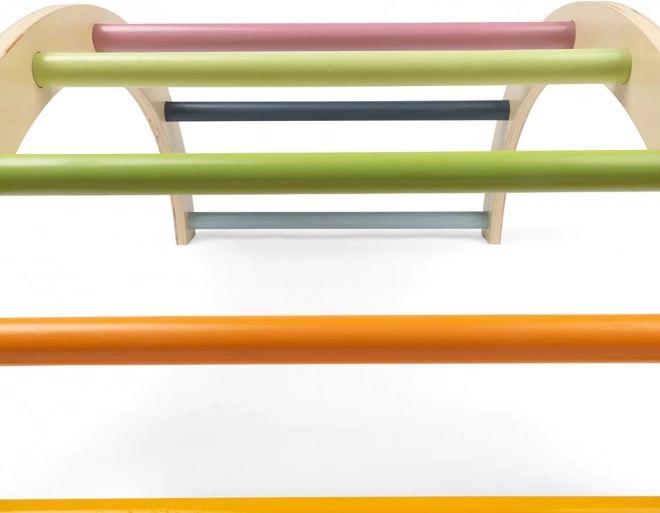 Montessori lok BIGJIGS TOYS je vsestranski igralni element, ki otroke spodbuja k naravnemu gibanju in raziskovanju. Lahko se uporablja kot plezalo, ravnotežni pripomoček, osnova za skrivališče z odejo ali kot viseče stojalo za ropotuljice in plišaste igrače. Pastelne prečke vabijo k aktivnosti in hkrati estetsko dopolnijo interier otroške sobe.
