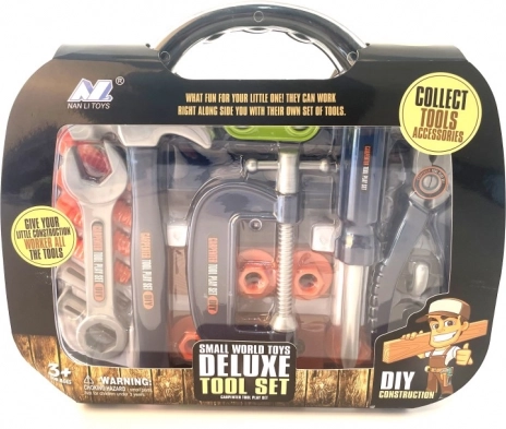 Ta set orodja je idealen za otroke od 3. leta dalje, ki radi ustvarjajo in posnemajo pravo delo. Vsa orodja so varna in izdelana iz kakovostne plastike.